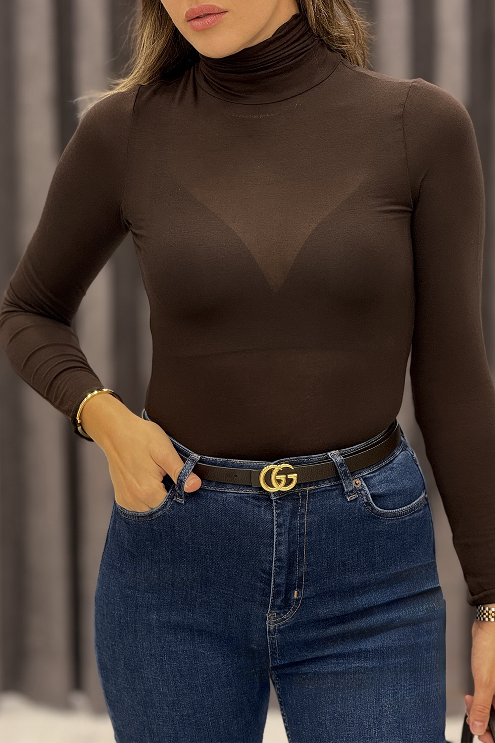 Acı Kahve Boğazlı Transparan Bluz 5226