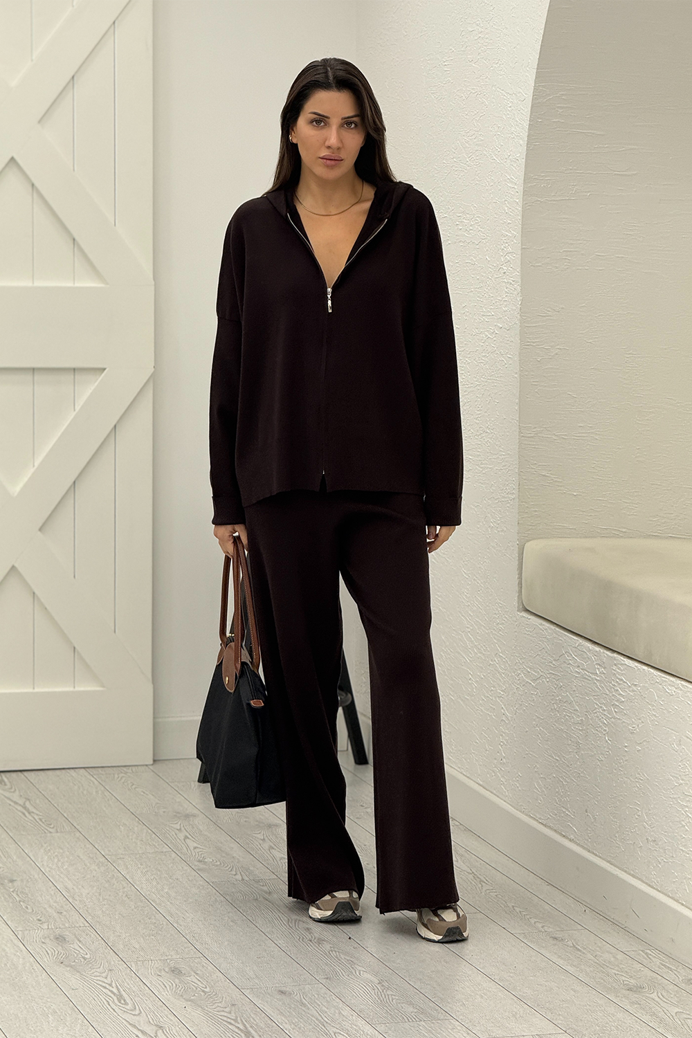 Acı Kahve Core-Spun Fermuarlı Kapüşonlu Takım 24160
