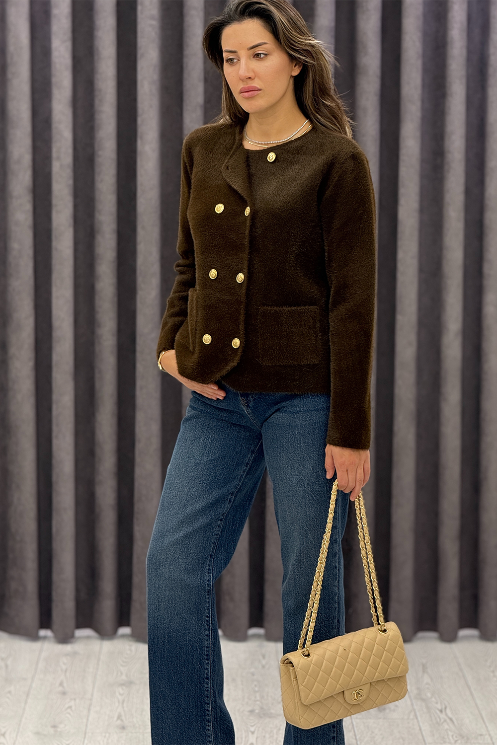 Acı Kahve Gold Düğme Hırka 3206