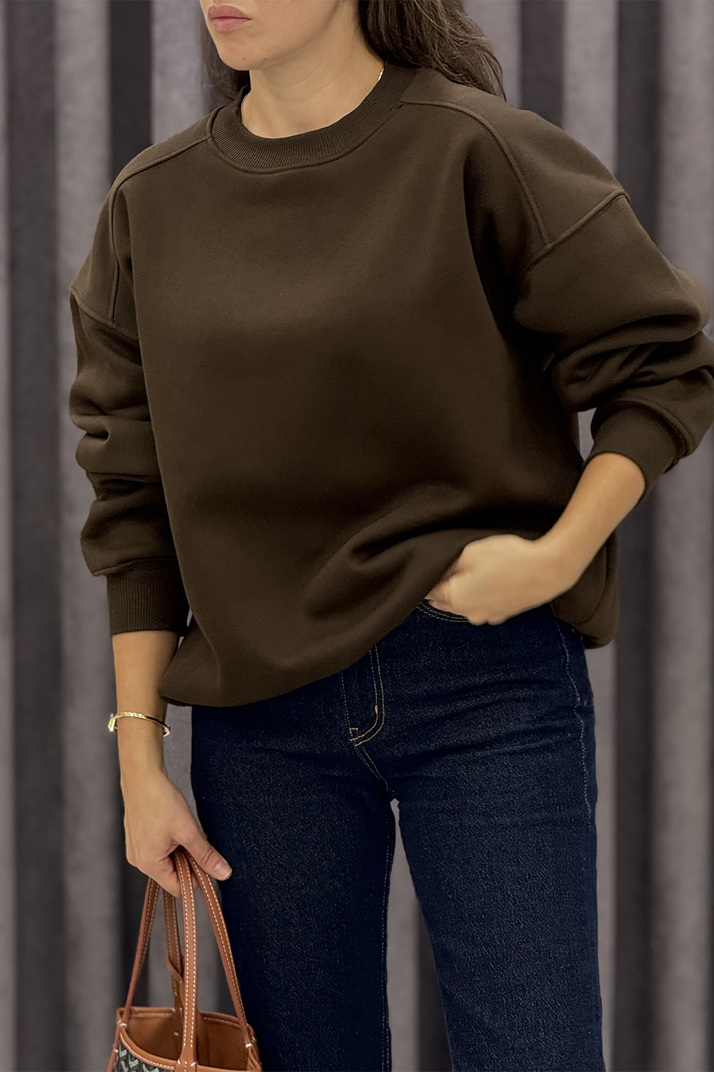 Acı Kahve Oversize Şardonlu Sweatshirt 3408