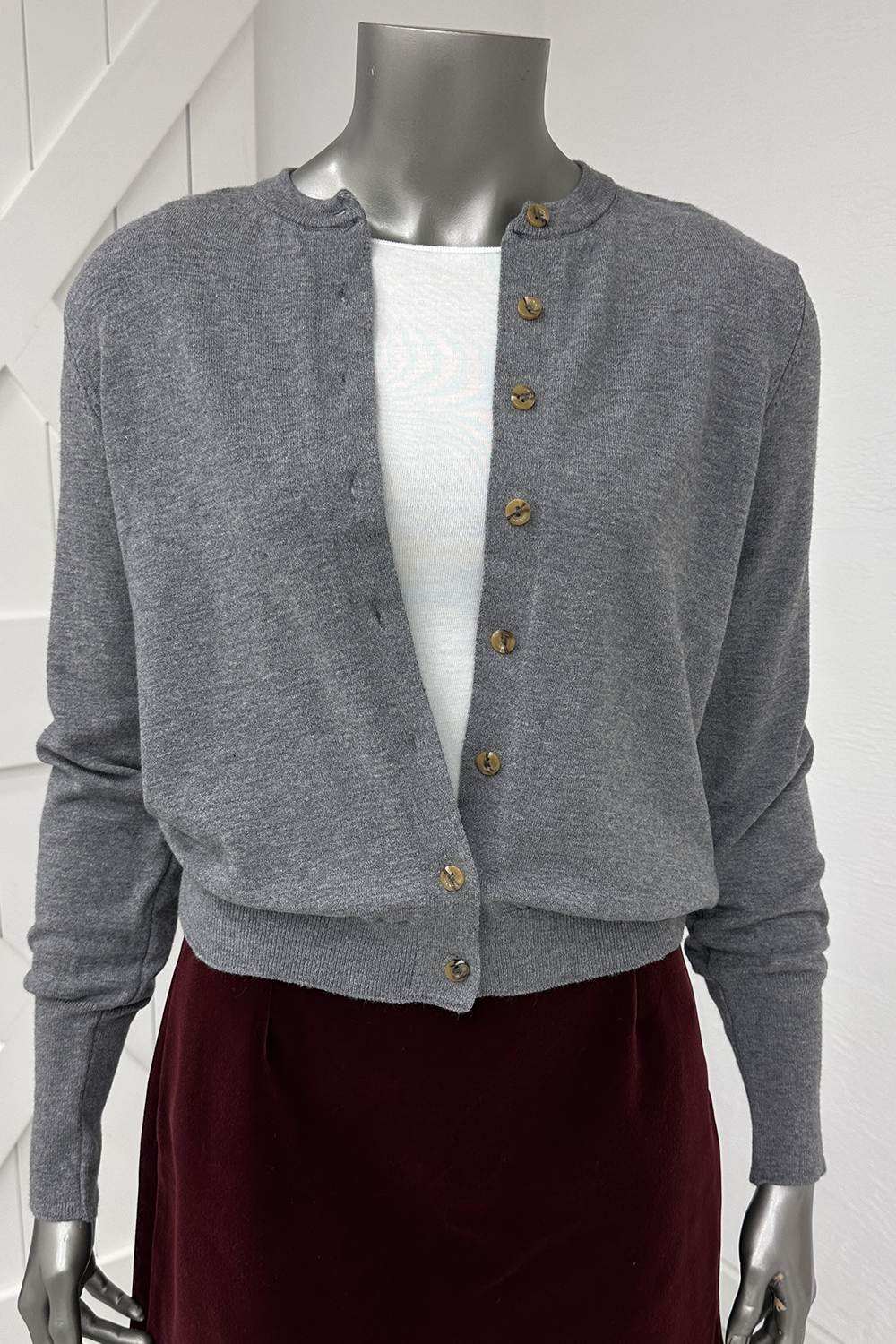 Gri Kemik Düğmeli Lyocell İplik Hırka 3077