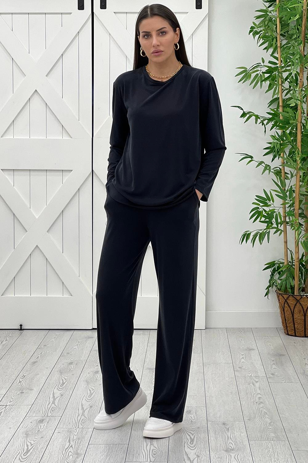 Siyah Bol Paça İnce Modal Tek Alt 1489