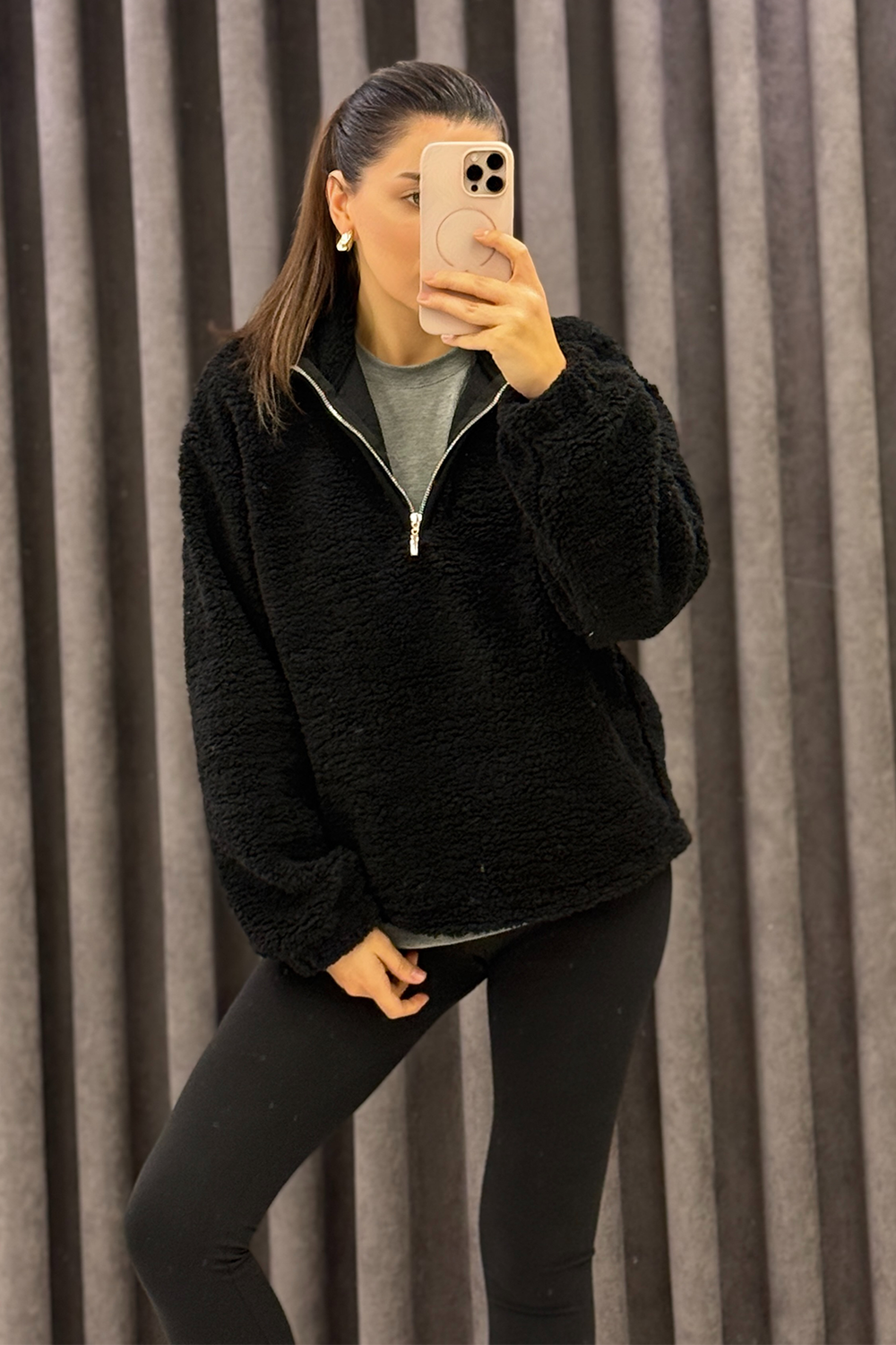 Siyah Fermuarlı Polar Sweatshirt 7429