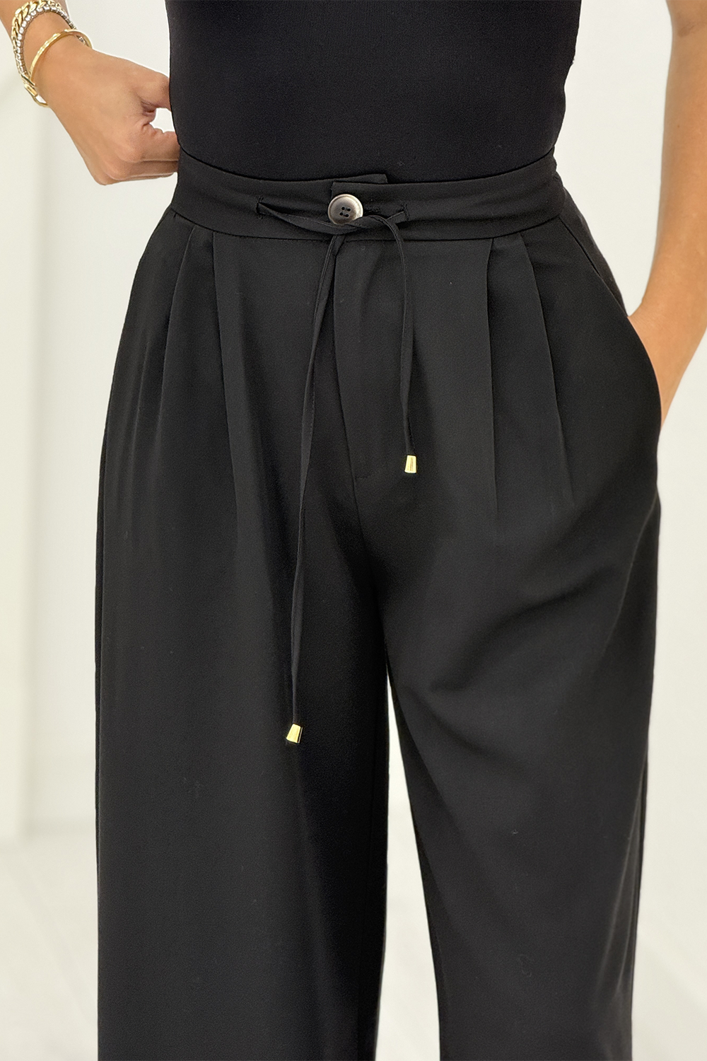 Siyah Pileli Palazzo Pantolon 51212